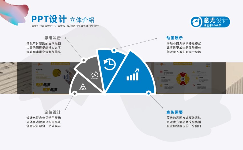 蘇州意尤文化傳播有限公司是一家有著多年廣告設計經(jīng)驗的蘇州知名廣告企業(yè) 主要業(yè)務有蘇州PPT設計、蘇州產(chǎn)品PPT設計、蘇州企業(yè)PPT設計、蘇州會議PPT設計、蘇州項目PPT設計、企業(yè)VI設計、設計印刷宣傳冊/樣本/單頁/名片等 自2007年成立以來,蘇州意尤廣告公司與蘇州及蘇州各市的幾百家中外企業(yè)進行了廣告設計合作,經(jīng)過多年發(fā)展公司已形成了以企業(yè)PPT設計、企業(yè)VI設計,廣告設計,廣告印刷,樣本設計,宣傳冊設計,名片印刷,菜譜制作,單頁,宣傳單等一批特長業(yè)務,相信在各位新老客戶的關心下,本公司會得到更大的發(fā)展,同時為客戶的發(fā)展宣傳保駕護航。